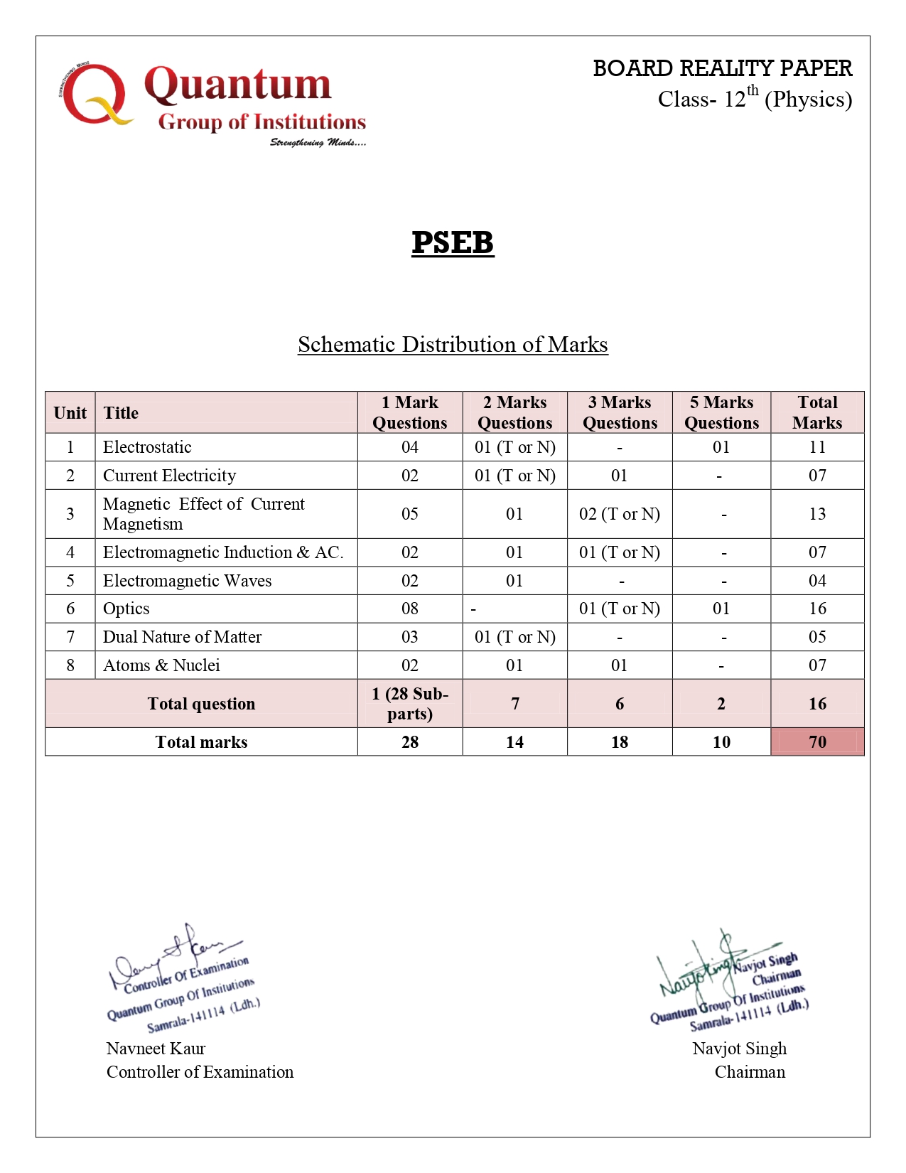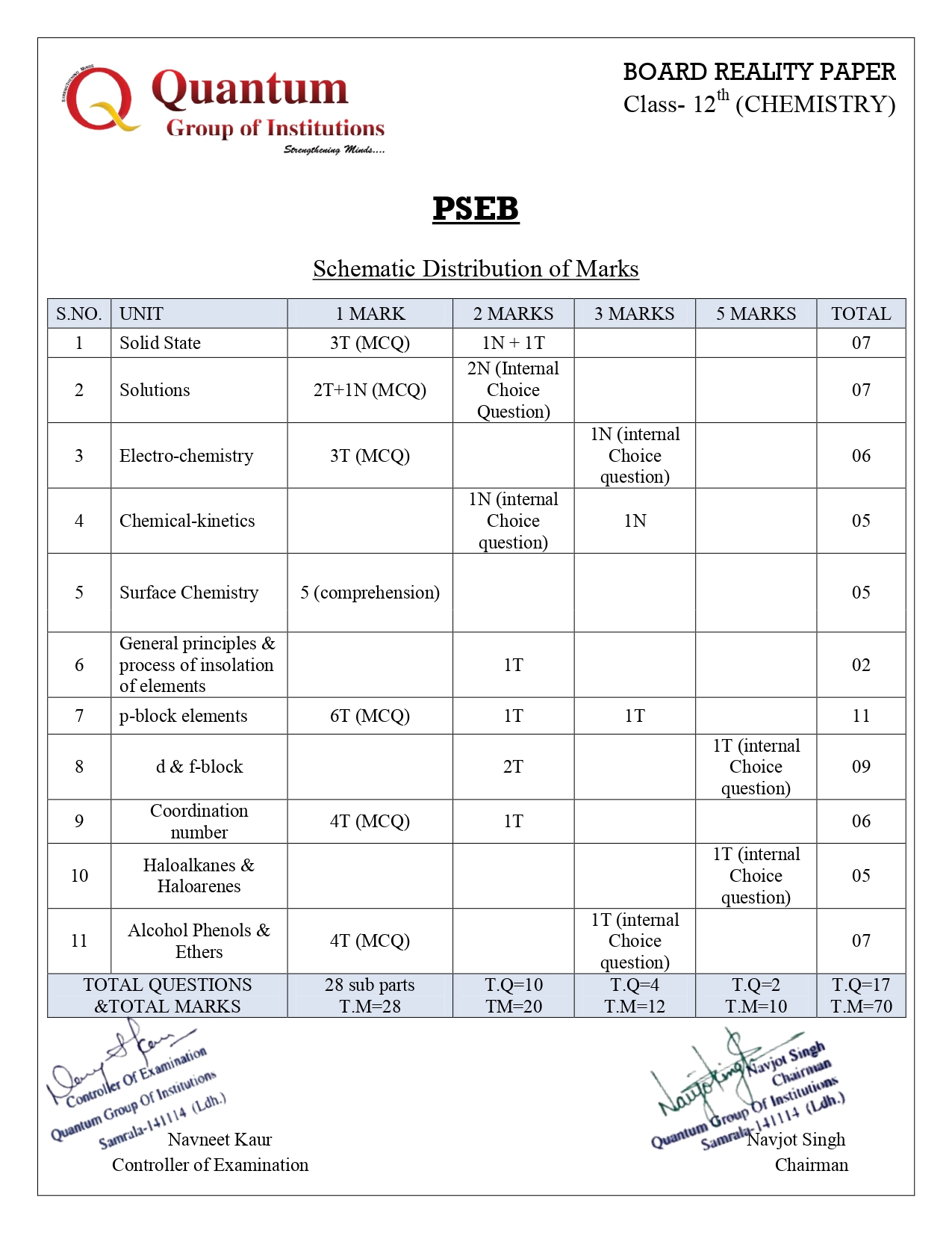 Blueprint of Question papers (Nov, 2022)